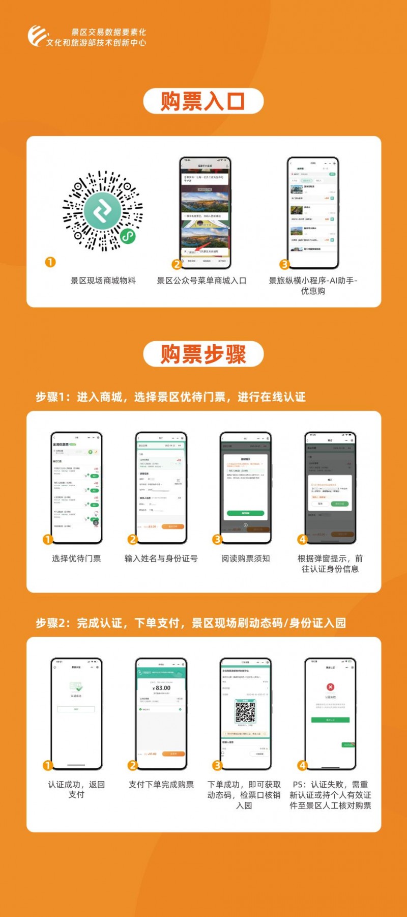 已上线双免服务的景区:通过搜索景区官方公众号/景区现场物料扫码/景旅纵横-AI助手-优惠购三种方式,选择退役军人优待门票-填写已成功认证游客实名信息,完成身份验证后即可完成下单支付-抵达景区现场可直接刷脸/刷身份证/动态码/碰一下核销入园。一次认证长期使用,后续其他景区购票无需重复认证!