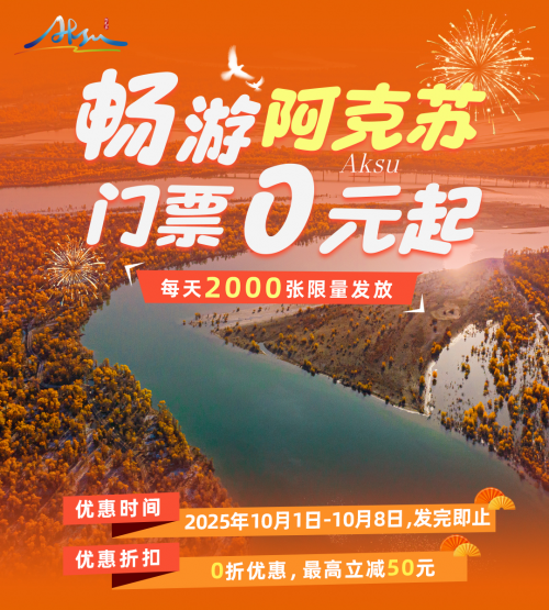 阿克苏于10月1日起在携程平台上线“0元游”景区消费券活动。每日投放2000张景区消费券,8天累计8000张,游客抢券后下单可享0折优惠,最高立减50元,天山托木尔峰、克孜利亚胜景、库车王府等热门景区均可免费畅游,真正实现"零门槛"领略阿克苏壮美风光。