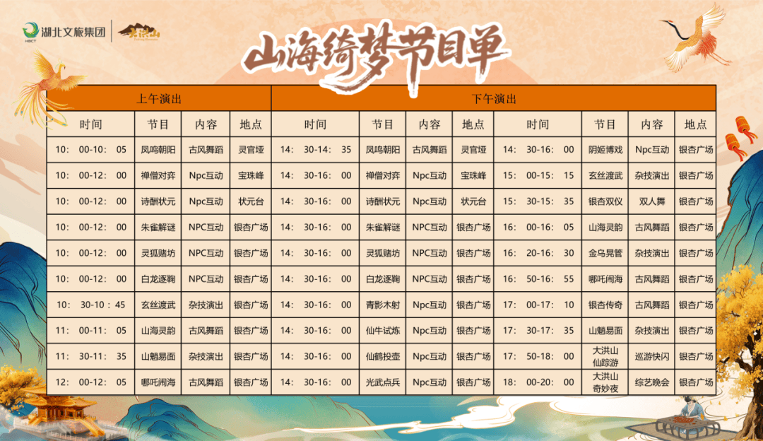 本届神话旅游节深入挖掘大洪山的历史与神话资源,通过NPC互动、沉浸式游戏和演艺活动,让游客与上古神兽“对话”,与刘秀、阴丽华等历史人物邂逅,在山水间感受传统文化的魅力。国庆活动将持续至10月6日,为游客提供充足时间体验这场文化盛宴。