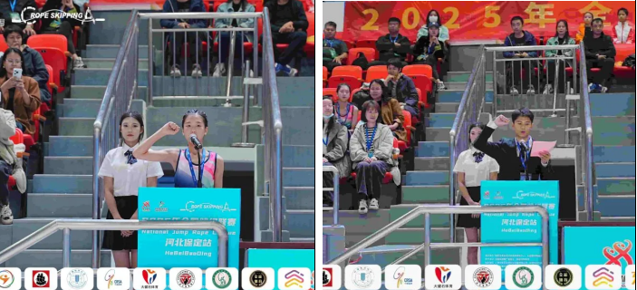 保定市体育局群众体育科科长周永桂致欢迎辞。周科长指出,跳绳运动在保定有着深厚的群众基础和广泛的发展前景,2025年全国跳绳联赛落地保定,是城市与体育的“双向奔赴”。