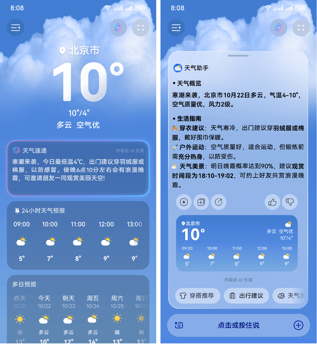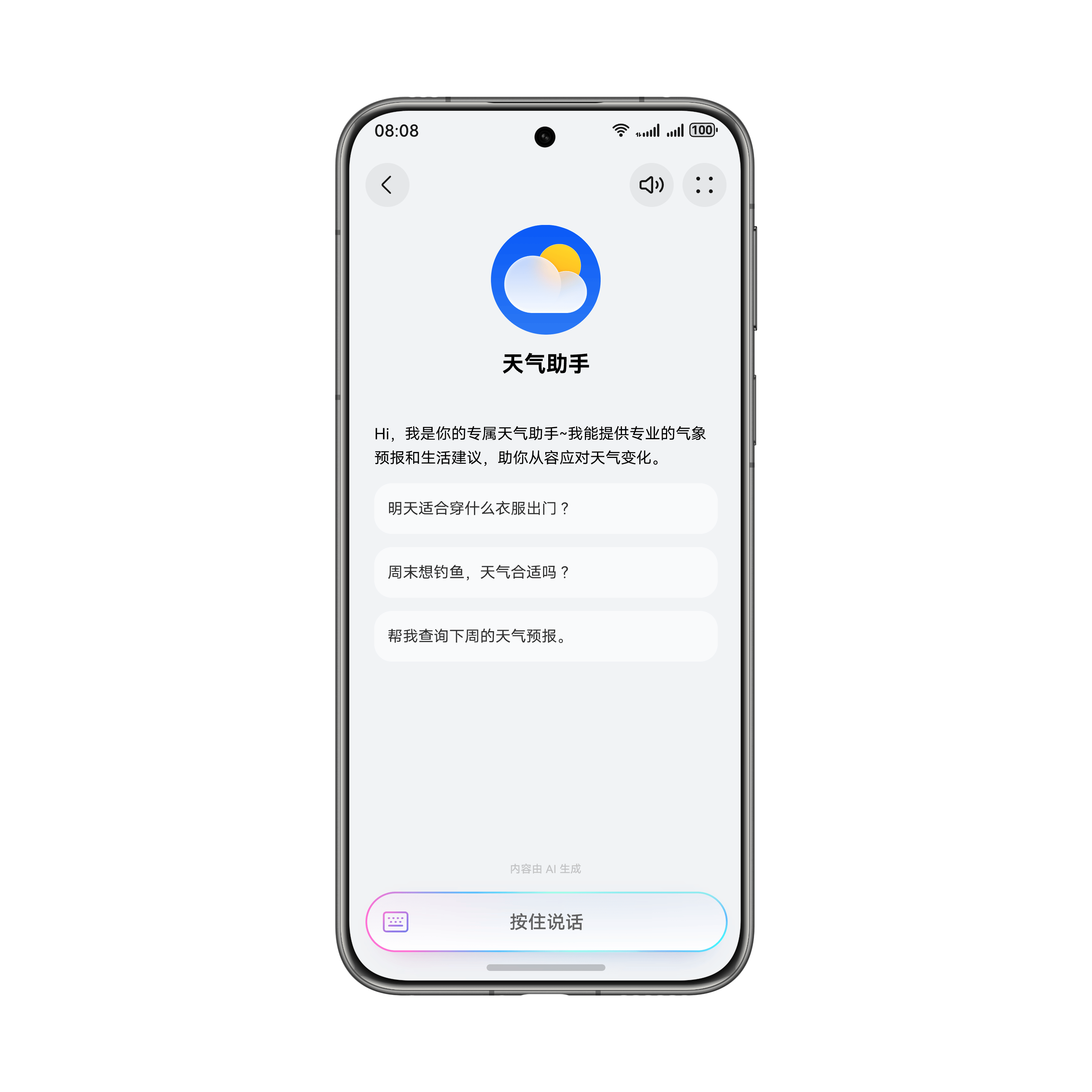 10月底冷空气说来就来,北方不少地区一夜入冬,雪花飘然而下。面对气温骤降的穿衣尴尬,华为天气智能体的“天气速递卡”会在首页直接告知用户出行建议,一句话就把当日温度、紫外线、穿衣等关键信息说透。假如周末计划约朋友滑雪,担心遇到降雪形成安全隐患,点击右上角天气智能体入口,输入“今天天气适合滑雪吗”,它可迅速给出实际建议。就连户外跑步穿搭也不怕“踩雷”:在华为天气-穿衣卡片-穿衣详情页中点击“智慧穿搭”,智能体会结合实时天气数据和需求推荐速干长袖、防风外套等穿搭建议,再也不用对着衣柜发呆。