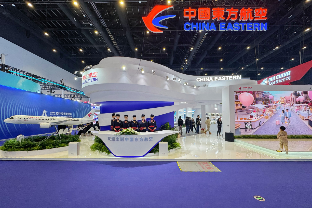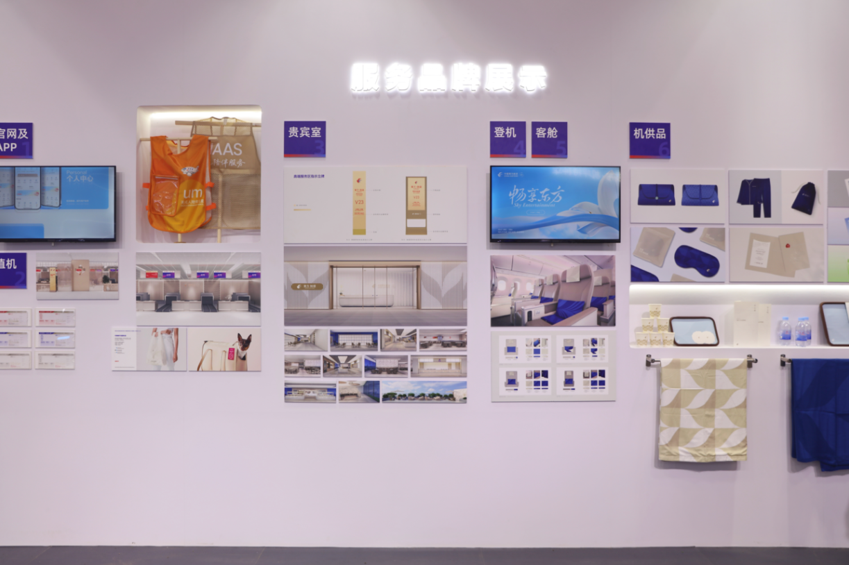 走过国际航线展示墙,东航的品牌建设成果则成为观众的下一个关注点。2025年1月,东航围绕“世界品位、东方魅力”的品牌核心价值,正式发布了服务品牌升级项目。东航设计优化了官网及APP界面、机上娱乐系统界面、东航值机区、贵宾室和机供品等内容,还首次推出了用于客舱、贵宾室等场景的专属原创音乐《玉兰赋》及“东方雅韵”、“云中漫步”两款专属香氛。在此次展会上,这些品牌升级的成果均面向观众展示,以传递东航“精心、精致、精准、精细”的服务理念。同时,东航旗下子品牌上航与中联航也首次在展台集中亮相,完整呈现东航母子品牌的协同发展格局。