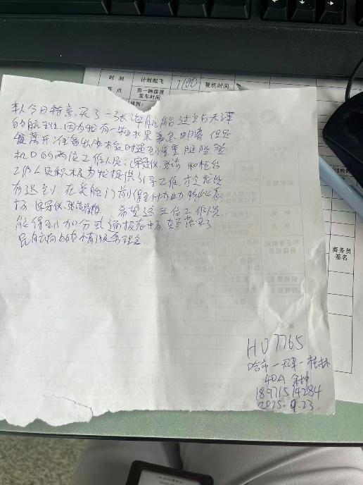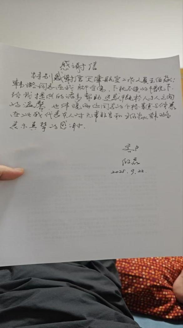 中国航空旅游网讯 2025年10月28日 天津—本报讯(通讯员:魏萌、杨帅)新海航旗下天津航空地面服务人员以安全为基、真情为伴,在天津滨海国际机场航站楼内持续为旅客提供专业而温暖的服务,赢得广泛赞誉。近期,天津航空接连收到多封旅客亲笔感谢信与电话表扬,字里行间满载着对天津航空地面服务品质的认可。