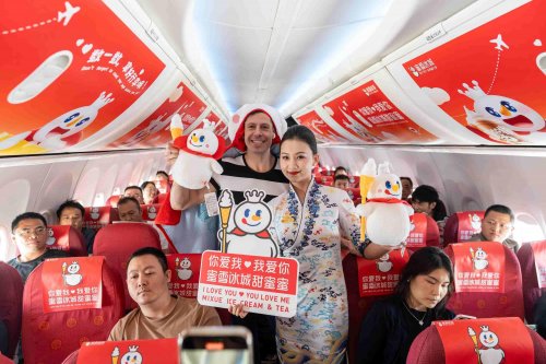 “欢迎乘坐雪王主题航班、欢迎登机!本次航班是海南航空联合蜜雪冰城联合打造的‘雪王主题彩绘飞机’首飞之旅……”随着乘务员亲切的机上广播声响起,主题航班活动正式拉开序幕。“蜜雪冰城主题曲的歌词是什么,有没有旅客愿意唱出来?”机上乘务员通过趣味问答与大家互动,“你爱我,我爱你,蜜雪冰城甜蜜蜜”机上旅客纷纷举手抢答,机舱氛围迅速升温。答对的旅客惊喜收获了蜜雪冰城礼品卡,欢声笑语中,机舱内的欢乐氛围逐渐推向高潮。