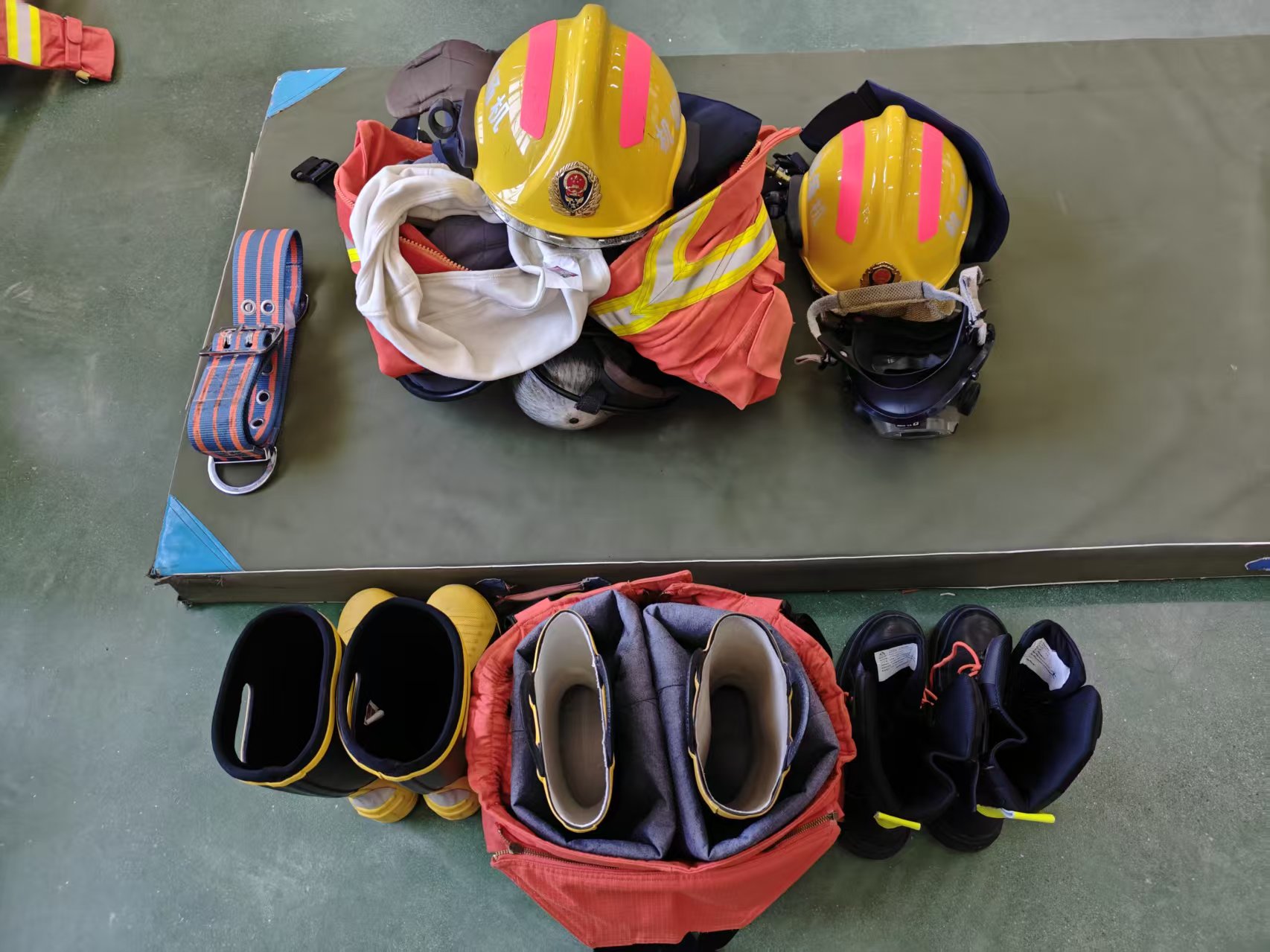 本次换新的防护装备均选用符合民航消防最高安全等级的产品,其中防火服采用新型耐高温复合材料,可承受 800℃短时高温炙烤,较旧款装备防护性能提升 40%。所有装备均通过国家消防装备质量监督检验中心检测,且统一采用高可见度的橙红色标识设计,确保在夜间及复杂气象条件下仍能清晰识别。在配发环节,人员逐件核对装备型号、检测报告,并组织消防人员现场试穿调试,确保装备贴合度与实用性达标,实现 "一人一适配"。