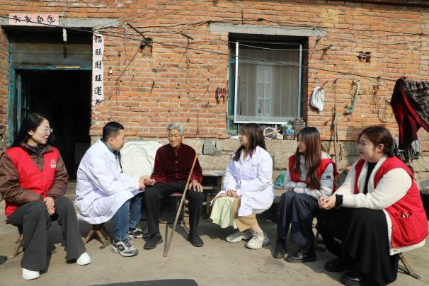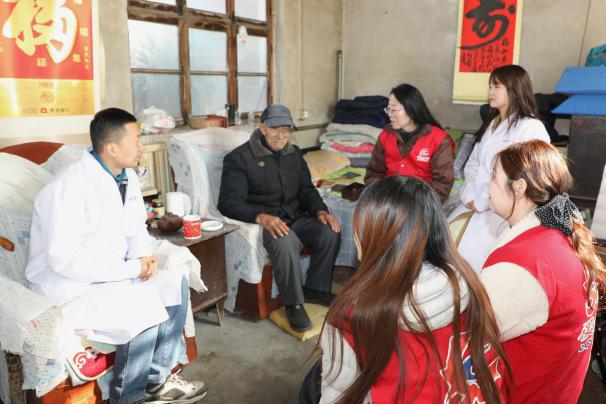 随后,在村委会的带领下,志愿者们带着精心准备的鸡蛋、面粉、牛奶等慰问品,前往一户户老人家中走访。志愿们围坐在老人身边,聊着家常,倾听他们过去的岁月与当下的生活。欢声笑语中,青春的朝气驱散了暮年的孤寂,真挚的关怀温暖了秋日的村庄。