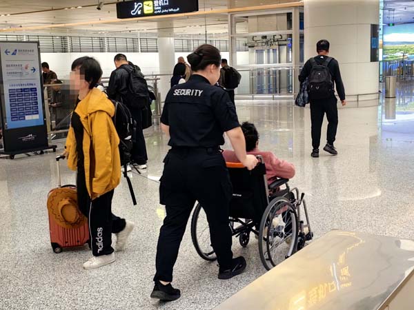 “阿姨,我帮您推轮椅。”在北区航站楼国内出发层,一名安检员主动上前帮扶行动不便的老人。针对新航站楼的构型特点,安全检查总站优化服务,在安检通道待检区设置“特殊服务岗””通过“一看步态、二看行李、三看神情”的预判机制,主动识别老年旅客需求。结合新枢纽智能化设施,安全检查总站特别推出“智能设备协助服务”,安排专人帮老年旅客操作自助验证闸机,讲解人脸识别过检流程,用耐心化解新环境带来的陌生感。