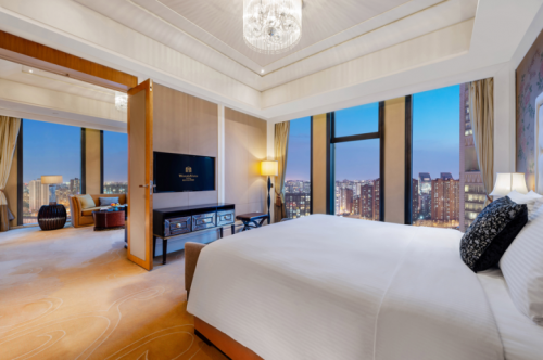 北京万达文华酒店|东方韵致 精致典雅——北京万达文华酒店坐落于CBD核心商务区,毗邻国贸中心及华贸中心,交通便利紧邻地铁1号线和14号线大望路站,驱车仅需30分钟即可抵达北京首都机场。作为万达文华品牌旗舰店,将文化历史与现代崭新元素相结合,为崇尚品质生活的尊贵宾客,营造优雅旅居感受的豪华酒店品牌。酒店共有417间豪华典雅的客房,融合东方神韵与北京特色的舒适入住体验。位于酒店7层的会议厅,总面积可达3,337平方米(34,703平方尺),其中无柱式设计的大宴会厅面积1368平方米,可举办850人的宴会,亦可分成3间独立会议厅,是举办各类会议活动及派对的不二之选。酒店内设6间餐饮场所,位于6层的美食汇全日餐厅、一品淮扬中餐厅、曲宴中餐厅、粤华小厨、永久王川味鱼鲜餐厅和1层的大堂酒廊。为来自各地、追求精细品质的饕客们打造舌尖上的盛宴并提供贴心的用餐服务。北京万达文华酒店以优雅谦恭的东方礼仪,以及和谐灵动的审美意蕴,充分展现与时俱进的东方韵致。为宾客带来“韵如是,心境自开”的温情体验。