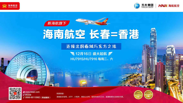 中国航空旅游网讯www.cnair.com 2025年11月18日,(通讯员:孙素文 作者单位:海南航空控股股份有限公司)当北国的冰雪画卷邂逅东方之珠璀璨霓虹,一场跨越南北的文旅盛宴即将拉开帷幕!新海航旗下海南航空将于12月16日正式开通长春—香港直飞航线,架起一座连接冰雪童话世界与国际化购物天堂的便捷空中桥梁。