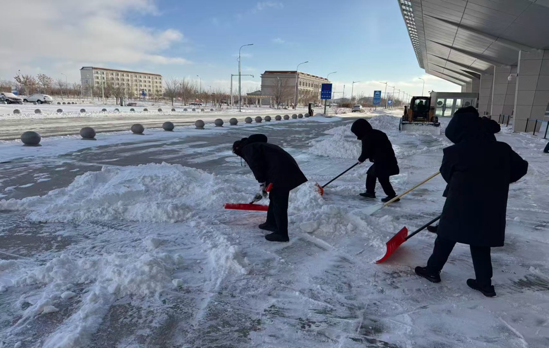 航站区聚焦旅客出行体验与通行安全,全方位落实清雪保障措施。工作人员对航站楼出入口、步行梯、停车场等重点区域进行地毯式清扫,铺设防滑垫、设置“小心地滑”警示标识,安排专人引导客流避免滑倒风险。同时,各部门加密公共区域清扫频次,及时清除道路积雪,确保旅客接驳车辆通行顺畅;候机楼内服务人员通过广播实时播报雪情与航班动态,在问讯处增设服务岗,为旅客提供热水供应、退改签咨询等暖心服务,重点关照老年、儿童等特殊旅客需求。