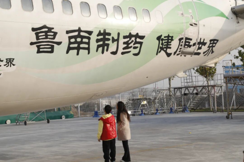 真正将气氛推向高潮的,是那架格外醒目的“鲁南制药·健康号”冠名飞机。当孩子们走到飞机前,看到父母所在企业的名字闪耀在机身上,那份由衷的自豪与认同,化作一张张灿烂的笑脸和一阵阵兴奋的欢呼。“这是我爸爸妈妈公司的飞机!”“我的爸爸妈妈是鲁南制药人,他们太厉害了!”——简单的语言里,是满满的荣耀感。他们在此打卡留念,不仅记录下了这次难忘的经历,更定格了一份对父母事业的直观理解与深深敬佩。