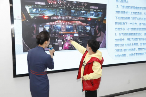 走进实训教室,让孩子们兴奋极了。那些课本上的知识如今呈现在眼前,孩子们对飞机的结构及功能有了一个更形象的认识,他们的眼睛被眼前庞大的飞机机体点亮,在这里,他们不再是远远仰望天空的孩童,而是近距离触摸航空科技的“小小探索者”。