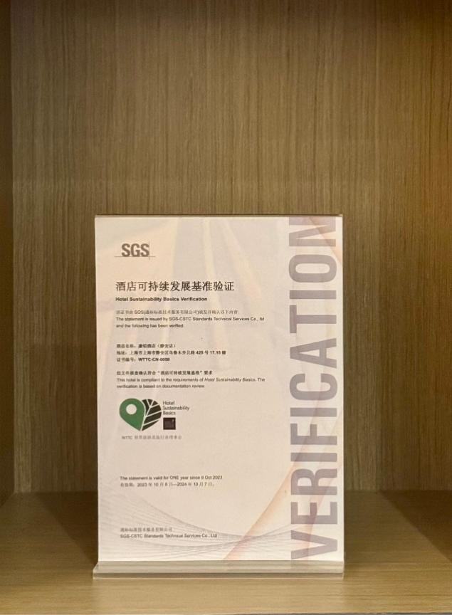 图-康铂酒店(静安店)酒店可持续发展基准(HSB)验证证书