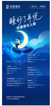 “感官助眠”板块则聚焦体验,通过听觉与视觉的双重引导,构建多维度的沉浸式睡眠场景。在听觉层面,酒店历时43小时,淘汰33个歌单,从千余首曲目中反复筛选试听,最终精心整理出“月亮投递晚安曲”助眠歌单。其中涵盖纯音乐、自然白噪音、轻爵士等多种类型,为不同偏好的宾客提供个性化的“听觉安眠药”。与此同时,怡程酒店亦在视觉与音效层面进一步强化沉浸体验,于自有媒体平台发布了三条助眠ASMR视频。视频全程采用无旁白设计,以极静画面与细腻环境音为核心,营造出静谧治愈的氛围,如同为身心提供一场舒缓按摩,帮助宾客卸下日间疲惫,自然入眠。