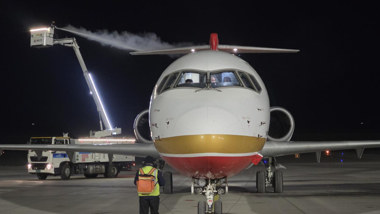 中国航空旅游网讯 (通讯员 王金贺)受强冷空气影响,素有“火洲”之称的吐鲁番迎来罕见低温降雪天气。12月13日清晨,吐鲁番交河机场在低温冰冻条件下,正式启动本年度首次航空器除冰作业,这是机场为应对本轮寒潮天气、确保航班安全运行采取的关键举措。