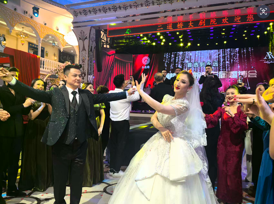 作为新疆文旅地标,二道桥大剧院依托毗邻二道桥大巴扎的核心区位优势,整合疆内数十家优质婚庆企业资源,构建起涵盖婚宴场地、婚庆策划、婚纱摄影、车队礼仪、特色美食、家纺装饰、蜜月旅游等全链条的婚庆服务生态。