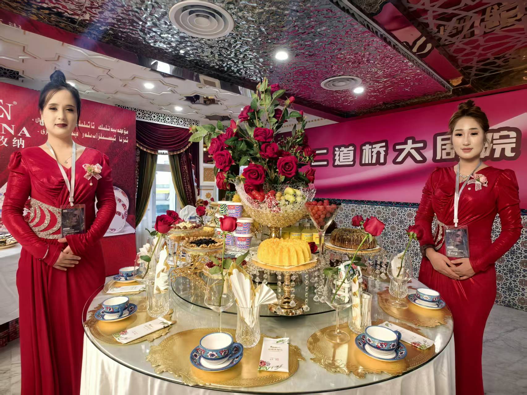 活动现场,特邀嘉宾们在逛展选购间沉浸式体验各民族婚俗特色,婚纱区陈列的高定华服,以精致刺绣勾勒丝路纹样,尽显典雅庄重;专属婚车队阵容规整,车辆线条流畅大气,搭配融合民族元素的定制装饰,尽显尊崇质感;现场乐队奏响多元曲风,悠扬旋律交织着民族乐器的独特韵味,营造出浪漫而热烈的氛围;甜品区则汇聚创意佳作,造型萃取民族精华,口感绵密醇厚,甜香馥郁绵长。这些精心呈现的元素,让这场盛会兼具味觉与视觉的双重高阶享受,尽显丝路婚韵的精致与厚重。