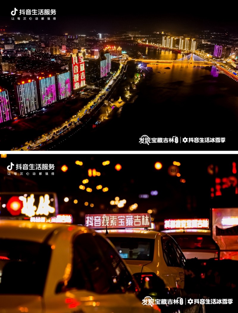 借助短视频的传播,吉林震撼的冬季雾凇景观被更多网友看到。进入12月,抖音生活服务在吉林市阿什小雾凇岛落地“登岛赶大吉”活动,带动小雾凇岛搜索量创冬季新高,吉林市抖音团购搜索量显著增长。系列活动得到吉林市委市政府的大力支持。华灯初上,吉林市松花江畔的地标楼体上灯光闪烁着“抖音搜索,宝藏吉林”字样。全市穿梭街巷的数千辆出租车车顶灯箱,也在提醒本地市民及异地游客关注“发现宝藏吉林”活动。