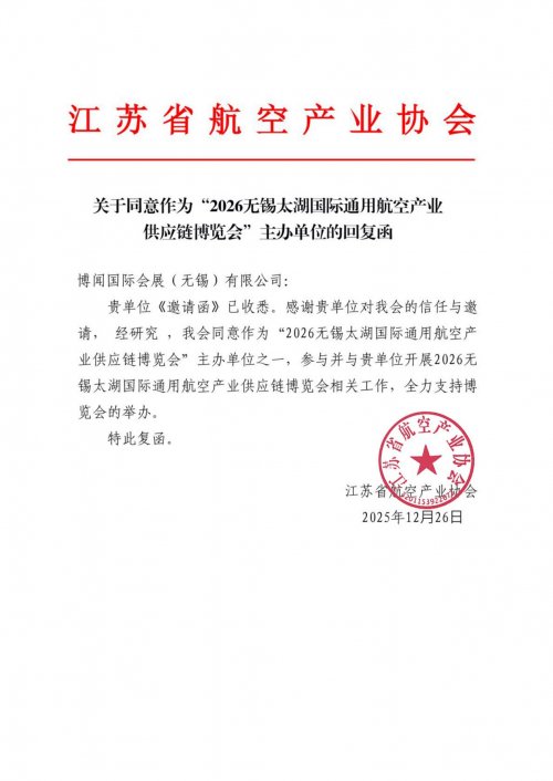 2026无锡太湖国际通用航空产业供应链博览会由江苏省航空产业协会主办,无锡丁蜀通用机场有限公司、博闻国际会展(无锡)有限公司承办。