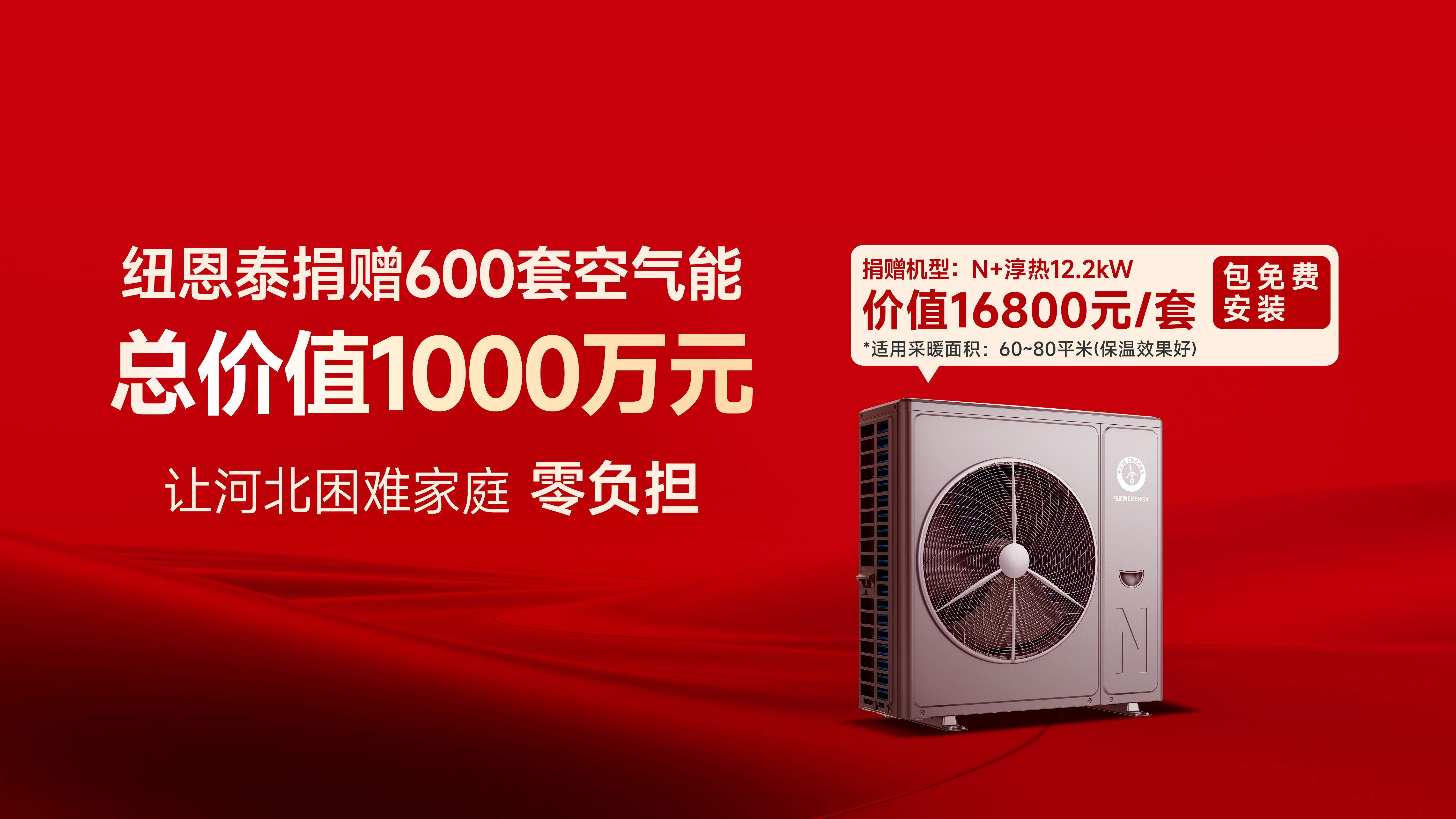 从即日起至2月15日,纽恩泰在原有2000万元暖冬惠民补贴基础上,追加1000万元专项投入,捐赠600套总价值1000万元的空气能采暖设备,定向帮扶河北困难家庭。该设备通过搬运空气中的免费热能实现采暖,运行成本比燃气节省一半,切实解决困难家庭“用不起暖”的难题。