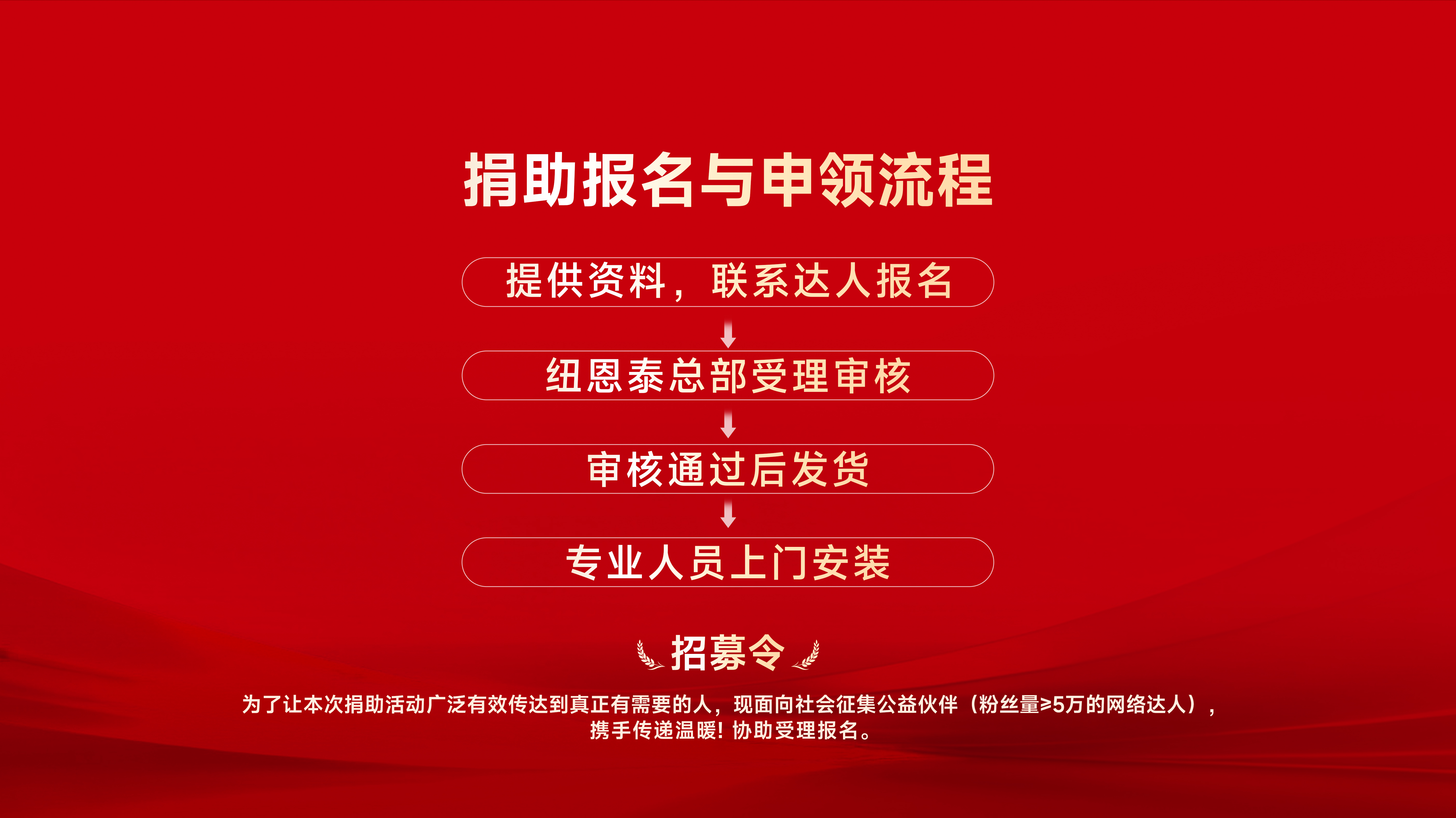 作为空气能行业标杆,纽恩泰始终践行社会责任,以技术赋能公益。此次千万级捐赠,不仅为河北困难家庭送去采暖保障,更以行业力量凝聚社会暖流。采暖刻不容缓,活动时间紧迫,希望各界积极扩散传播,让更多温暖抵达需要的角落。