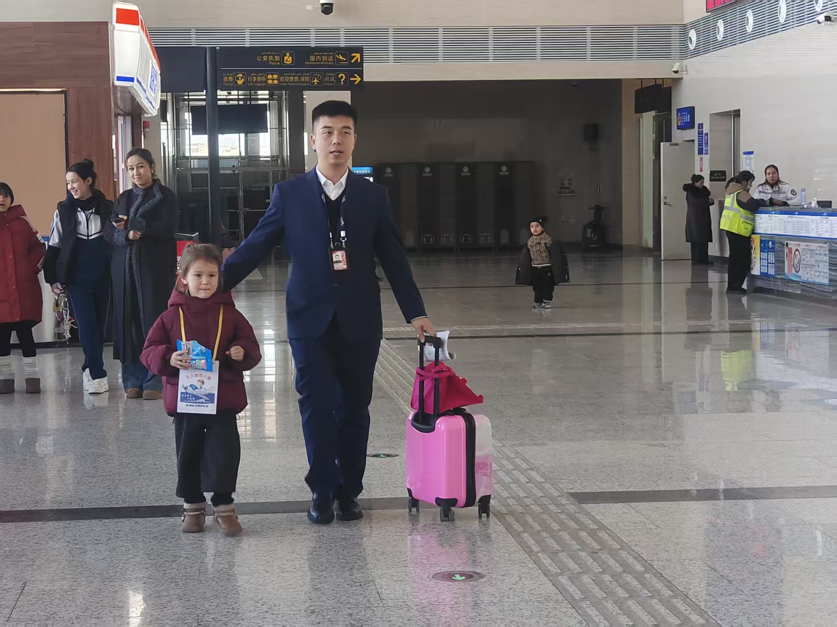 中国航空旅游网讯 (通讯员:闫姜逸潇)在熙攘的旅客中,一位身穿红色棉袄、独自乘机的“无陪儿童”成为特殊风景线。1月17日,新疆机场集团于田万方机场地面服务人员,依托“阗心助行”品牌核心产品“特殊旅客定制守护”,全程护航8岁小旅客娜娜乘机前往外地父母身边,用细致照料为这场“单飞”之旅筑牢安全防线,也让远方的家长与送行的舅舅倍感安心。作为新疆机场集团“天缘·缘同心”服务体系的核心组成部分,“阗心助行”打造“首乘无忧伴飞”“特殊旅客定制守护”“跨程无缝衔接”三大服务产品,娜娜的旅程正是“特殊旅客定制守护”产品落地见效的生动缩影。