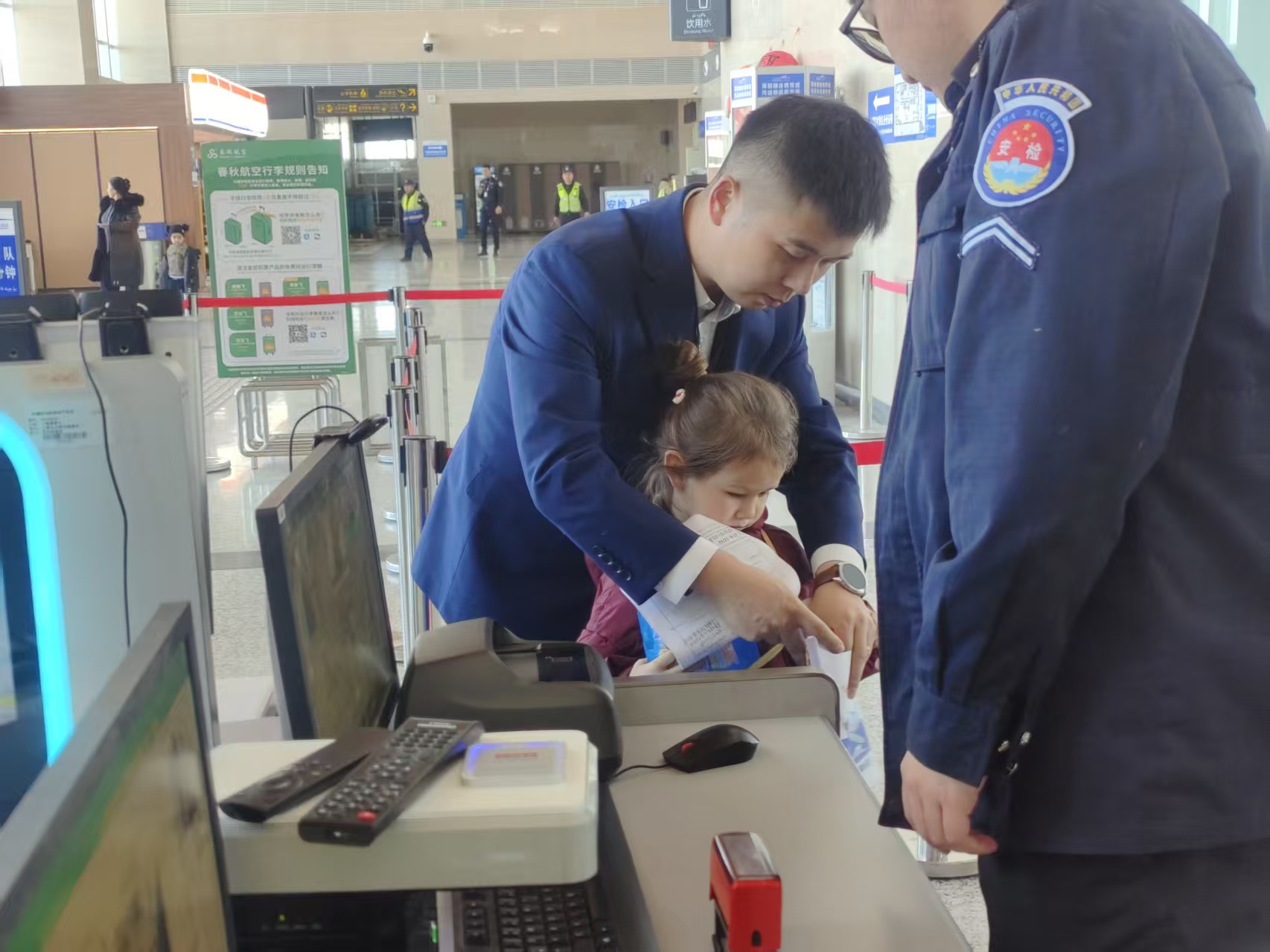 当日下午14时,娜娜在舅舅的陪同下抵达机场特殊旅客服务柜台。由于爸爸妈妈在外地工作,娜娜平时和舅舅一起生活,此次专门乘机前往爸妈身边团聚。地面服务人员立即启动“特殊旅客定制守护”产品的无陪儿童专项服务流程,严格按照民航规定,对5周岁(含)以上、12周岁以下独自乘机儿童提供专属保障,仔细核对娜娜的户口簿、航班信息及接机人资料,指导舅舅填写《无成人陪伴儿童乘机申请书》,逐一确认过敏史、饮食偏好等细节。