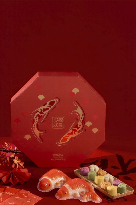 点心礼盒|售价 CNY 258此款礼盒主打中式传统点心与创意年礼设计,内含年糕鱼(230g*2),以及如意(花生果仁馅)、祥云(果肉山楂馅)、福袋(蔓越莓馅)、福禄(抹茶红豆馅)、元宝(椰蓉蔓越莓馅)等多款造型别致、寓意吉祥的精致点心各两份。礼盒更附赠春联福字一套、MOMO红包两个及MOMO掼蛋纸牌两副,融美味与年趣于一体,传递满满福气。