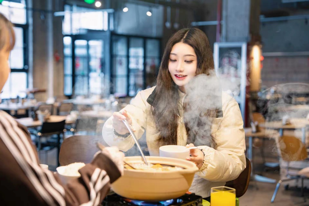 在冬日长白山,游客不仅能体验滑雪赏雪,也可在此与家人朋友围桌而坐,共享热气蒸腾的菜肴,感受食物带来的温暖与满足。