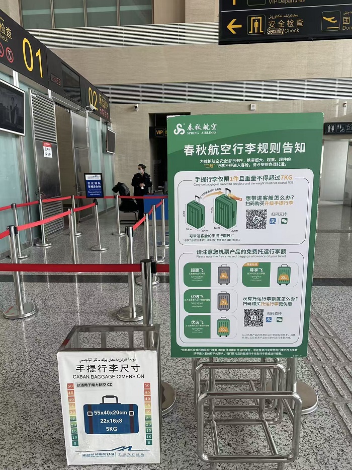 为做好春运服务保障工作,于田万方机场在航站楼值机柜台、安检通道旁设置行李标准展示牌,清晰标注手提行李尺寸规范;现场工作人员将全天为旅客提供行李测量、托运指引、出行咨询等便民服务。针对春运期间超规行李增多的情况,机场已联合各驻场航空公司开通春运专属快速托运通道,最大限度压缩办理时长,避免旅客因行李问题耽误登机行程,全力提升春运出行效率。