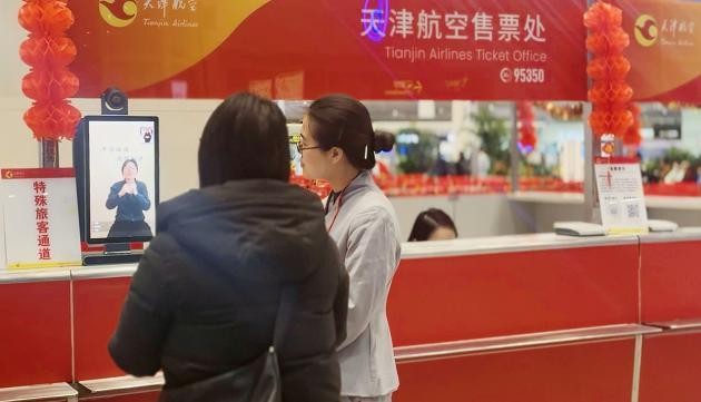 中国航空旅游网讯www.cnair.com 2026年春运大幕已经开启,为深入践行“人民航空为人民”的宗旨,新海航天津航空在携手天津市残疾人福利基金会,创新推出“鲸言畅行”科技助残项目。春运首日,两台AI智能手语翻译机亮相天津滨海国际机场正式投入使用。据悉,天津航空是国内首家使用此设备的航空公司,同时也实现了该智能翻译机在天津“三站一场”(天津站、天津西站、天津南站及天津滨海国际机场)四个重要交通枢纽的完整落地。