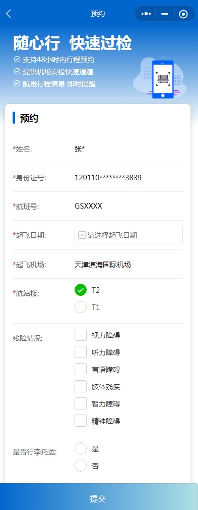 除了智能翻译手语外,各类残障旅客还可登录“鲸言随心行”小程序,预约使用轮椅、人工引领等乘坐天津航空航班出行服务。旅客仅需提前上传航班信息及服务需求,天津航空便会将服务前置,提前安排工作人员通过小程序回复告知残障旅客服务点位,实现供需精准对接与服务无缝衔接,全方位保障残障旅客安心出行、畅行无阻。