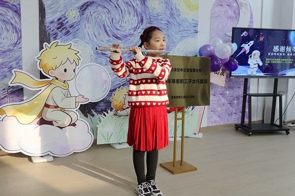 托管班老师现场介绍了本期课程安排与特色活动,涵盖课业辅导、手工创作、科普体验等多元内容,力求让孩子们在玩中学、学中乐。孩子们也带来了才艺表演,用悠悠笛声与新春祝福展现蓬勃朝气,赢得阵阵掌声。