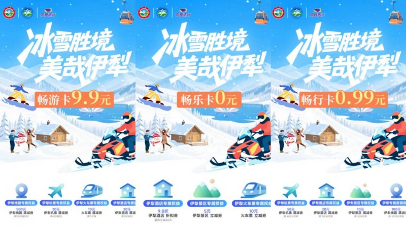 据悉,“伊犁潮玩卡”针对不同游客需求精准设计权益组合,分为“畅乐卡”“畅游卡”“畅行卡”三种卡型。其中,“畅乐卡”主打零门槛畅享基础优惠,用户可“0元一键激活”,轻松获取包括景区5元立减券、10元火车票立减券以及最高立减20元的酒店折扣券等专属权益礼包;“畅游卡”则是深度游览的超值之选,仅需9.9元,即可获得包含伊犁线路满3000减500元的大额满减券,以及覆盖机票、火车票、酒店的多项满减权益,此卡专为计划进行多日游、团队游或家庭游的游客设计,大大降低中长途旅行综合消费成本,纵享伊犁好风光;“畅行卡”则聚焦出行环节的专项补贴,以限时抢购价0.99元的惊喜价格,直击出行核心环节,权益包含伊犁机票专属权益,以及酒店、景区及度假产品的专属满减券,精准补贴助力游客轻松实现“出行自由”,尤其适合年轻游客及自由行爱好者。