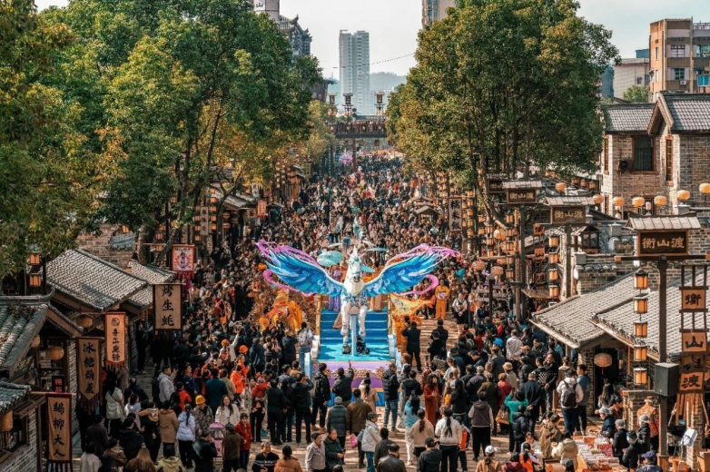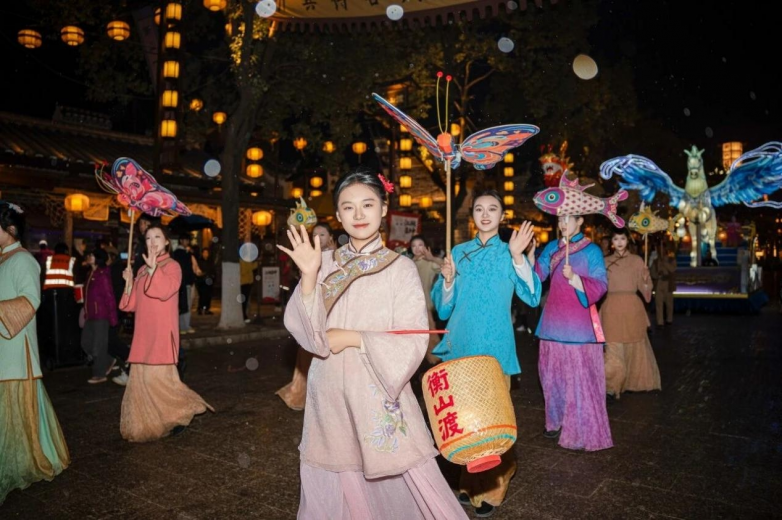 渡口民俗盛宴启,沉浸式演绎闹新春。2月15日-2月23日(腊月二十八至正月初七),衡山渡市井烟火区、观湘码头等区域迎来“渡口新春·民俗盛宴”,打造集非遗民俗演绎、国潮巡游、特色美食于一体的沉浸式春节体验。《薪火传奇》民俗喷火、《渡口花鼓灯》非遗表演、《渡口寻影戏》非遗皮影戏等经典节目轮番上演,《马上有福》财神巡游、《江潮共舞》国潮快闪、《入梦衡山渡》水上实景演绎等特色演绎精彩亮相,为游客带来视觉与感官的双重盛宴。同时,新春五大NPC互动沉浸游戏同步上线,“福、禄、寿、喜、财”五福主题体验趣味十足,投壶、时来运转、摔碗酒等传统游戏让游客沉浸式感受新春乐趣,凭活动获得的五福银票,还可兑换精美礼品或美食优惠抵用券,在延长游玩体验的同时,带动街区消费集聚。