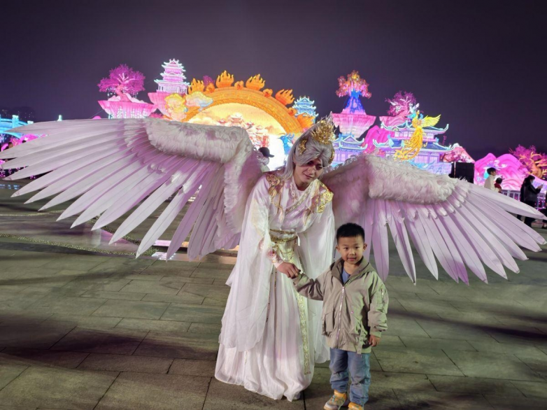在灯组创作之外,本届灯会进一步强化“沉浸式体验”属性,引入多点位NPC互动机制。结合灯组主题与游览动线,园区设置多位情景化NPC角色,参与巡游、互动引导与趣味演绎,游客可在观灯过程中与NPC进行合影、互动打卡、任务式体验,增强游览参与感与故事代入感,实现“边走、边看、边互动”的夜游体验升级