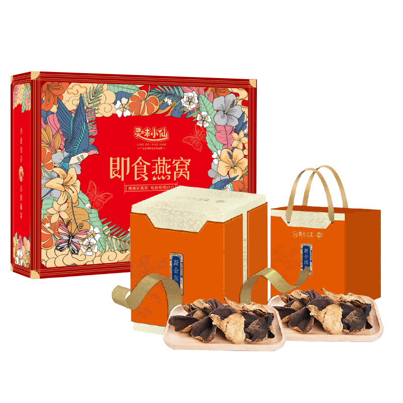B款:即食燕窝礼盒*1盒(40g*8瓶)、烟熏腊鸭腿500g*1份、烟熏风干腊鸭500g*1份、广式鲜味腊肠400g*1份、北京烤鸭800g*1份、广式烧鹅1000g*1份、烟熏麻辣腊肠400g*1份、黑猪烟熏腊肉250g*1份、秘制麻椒鸡500g*1份、烟熏年味腊鱼450g*1份、金汤鲍鱼花椒鸡礼盒1500g*1盒,立即购买。