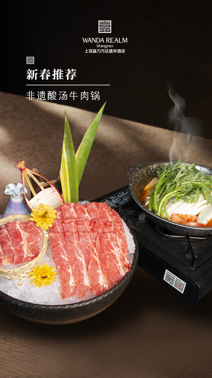在高端珍馐之外,酒店更将非遗风味融入新年餐桌,非遗酸汤牛肉锅便是藏着烟火气的惊喜。传承非遗古法工艺,精心熬制的酸汤色泽鲜红,酸香醇厚却不刺鼻,经过酸汤慢煮后,肉质鲜嫩不柴,吸饱了酸汤的精髓,入口酸辣开胃,越煮越香。酸汤的清爽化解了牛肉的油腻,每一口都让人食欲大开,搭配新鲜时蔬涮煮,风味更佳,既能满足家人对重口的偏爱,也能在冬日里带来一抹暖心暖意,让非遗风味照亮团圆时刻。