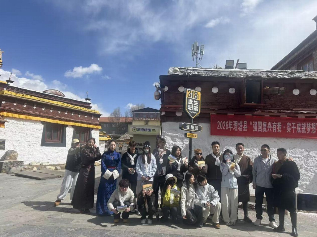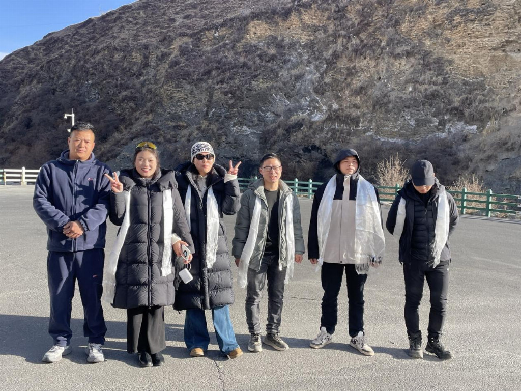 首批双卡游客在德格玉龙拉措景区拍照留念 供图 玉龙拉措景区