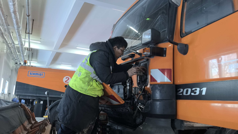 维护过程中,车辆维护人员同步对车辆液压系统、电气线路、制动系统、底盘等关键部位进行清洁与检查,清理冰雪与融雪剂残留,加注低温润滑脂,排查安全隐患,建立详细维保台账,做到“一车一档、一项一记”,实现设备全生命周期闭环管理。