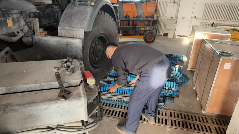 由于前期除冰雪作业持续时间长、作业强度大,扫刷部件出现不同程度磨损,直接影响后续除雪效率与道面清洁效果。机场车辆维护人员严格按照设备操作规范,对除雪车滚刷、扫刷全面拆解检查,对磨损超标、变形、老化的扫刷统一更换,同步完成紧固、调试与试运行,确保机械作业贴合道面、清扫干净、运行稳定。