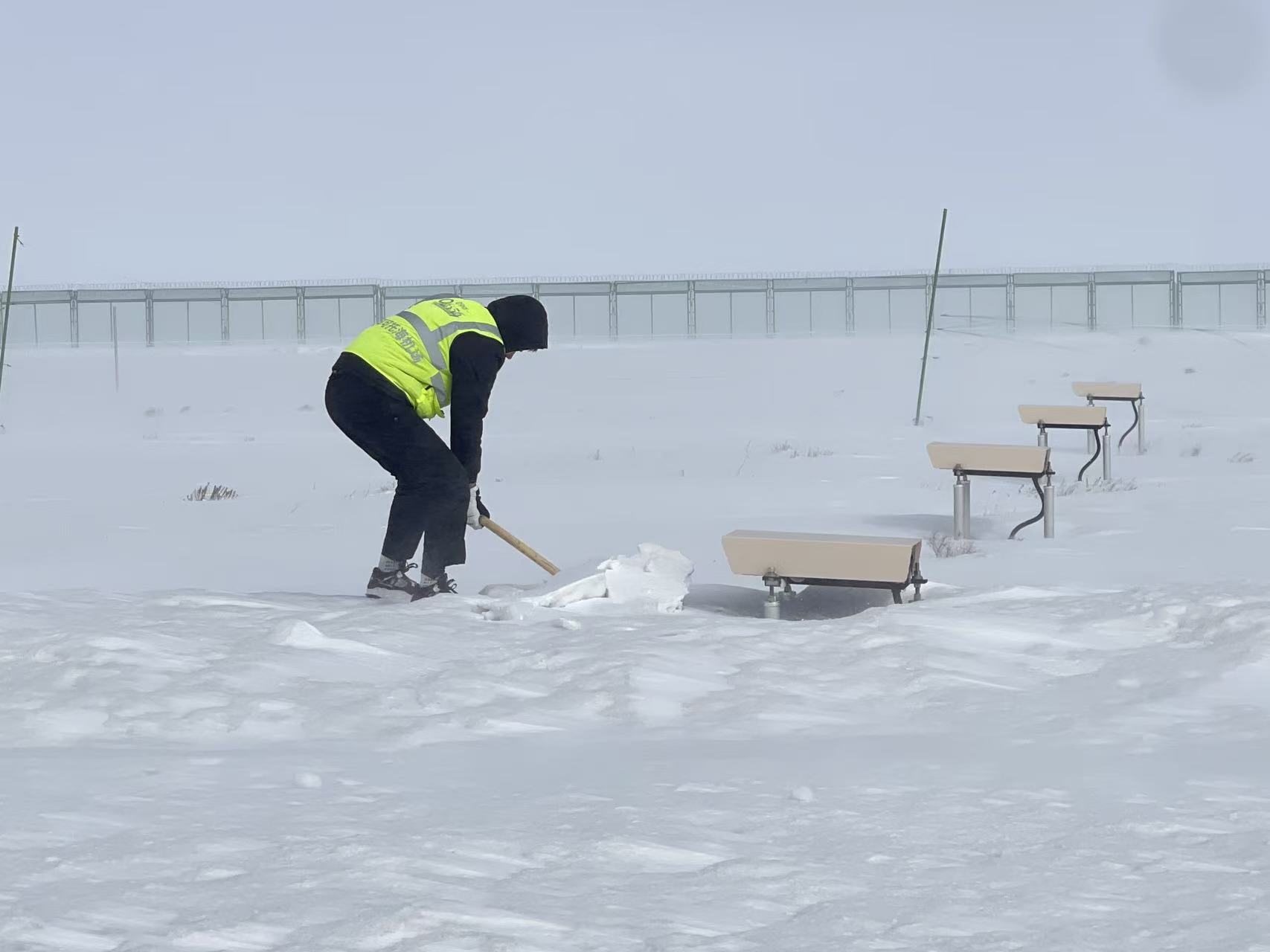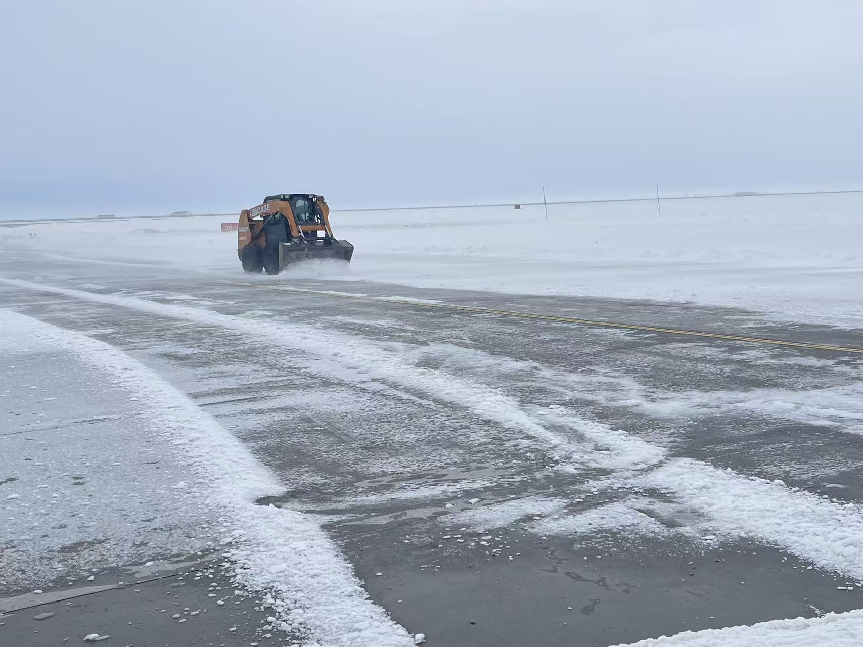 作业人员分工明确、协同高效,采用机械除雪加人工辅助清理模式,实时跟踪雪情变化,做到“雪停即清、随滑随清”,全力恢复道面摩擦系数,确保跑道处于适航状态。