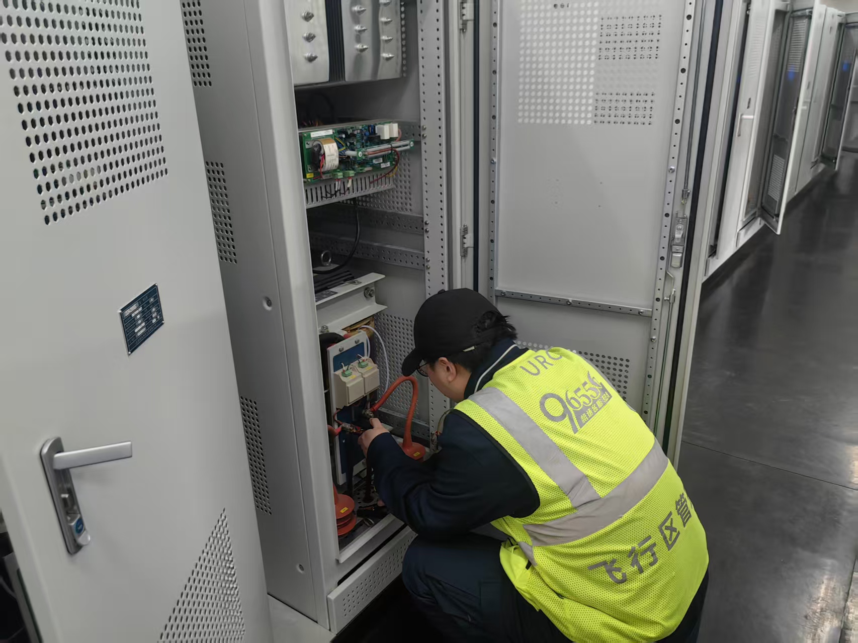 换季工作紧扣冬春气候特点,聚焦低温、大风、冻融等天气对助航设施的影响,严格遵循《民用机场助航灯光系统维护规程》及机场运行管理规范,采用“分区域、分时段、全覆盖”作业模式,利用夜间航班间隙与跑道关闭期间高效推进。工作人员重点对跑道、滑行道、机坪及进近灯光系统开展全维度检修,逐一清洁灯具透镜、清除积雪冰霜与杂物,保障光强与透光率达标;检测灯具密封性能、紧固易折件与底座,防范大风脱落风险,遥测电缆回路绝缘阻值、排查隔离变压器隐患,确保供电稳定;对跑道边灯、PAPI灯、进近闪光灯等核心灯光,逐盏检查发光强度与闪烁频率,更换老化灯泡与破损灯壳,对低温易松动的灯具底座进行加固;针对供电系统,重点检测调光控制柜、电缆接头的绝缘性能,清除设备内部积尘与凝露,更换老化元器件,避免低温导致线路故障;同时,清洁跑道标识标牌污渍,修复磨损反光涂层,校准风向标指向精准,确保各类设施设性能符合行业标准,为飞行员提供清晰指引。