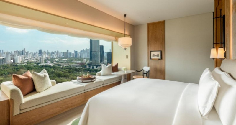 曼谷的宋干节总能点燃人们的热情。是隆路、考山路等标志性街巷化作热闹的水上乐园,当地人与游客无分年龄、不论国籍,在泼水嬉闹中释放压力,让欢乐在水花间肆意传递。就在这片热力四射的区域,焕新升级的曼谷都喜天丽酒店静立伦披尼公园旁,成为一方雅致的休憩之所。酒店于 2024 年重装启幕,将经典隽永的泰式雅致与现代设计完美融合,咫尺之外是节庆的喧嚣,步入其中却能享受一份悠然静谧,在热闹与安宁之间自在切换。