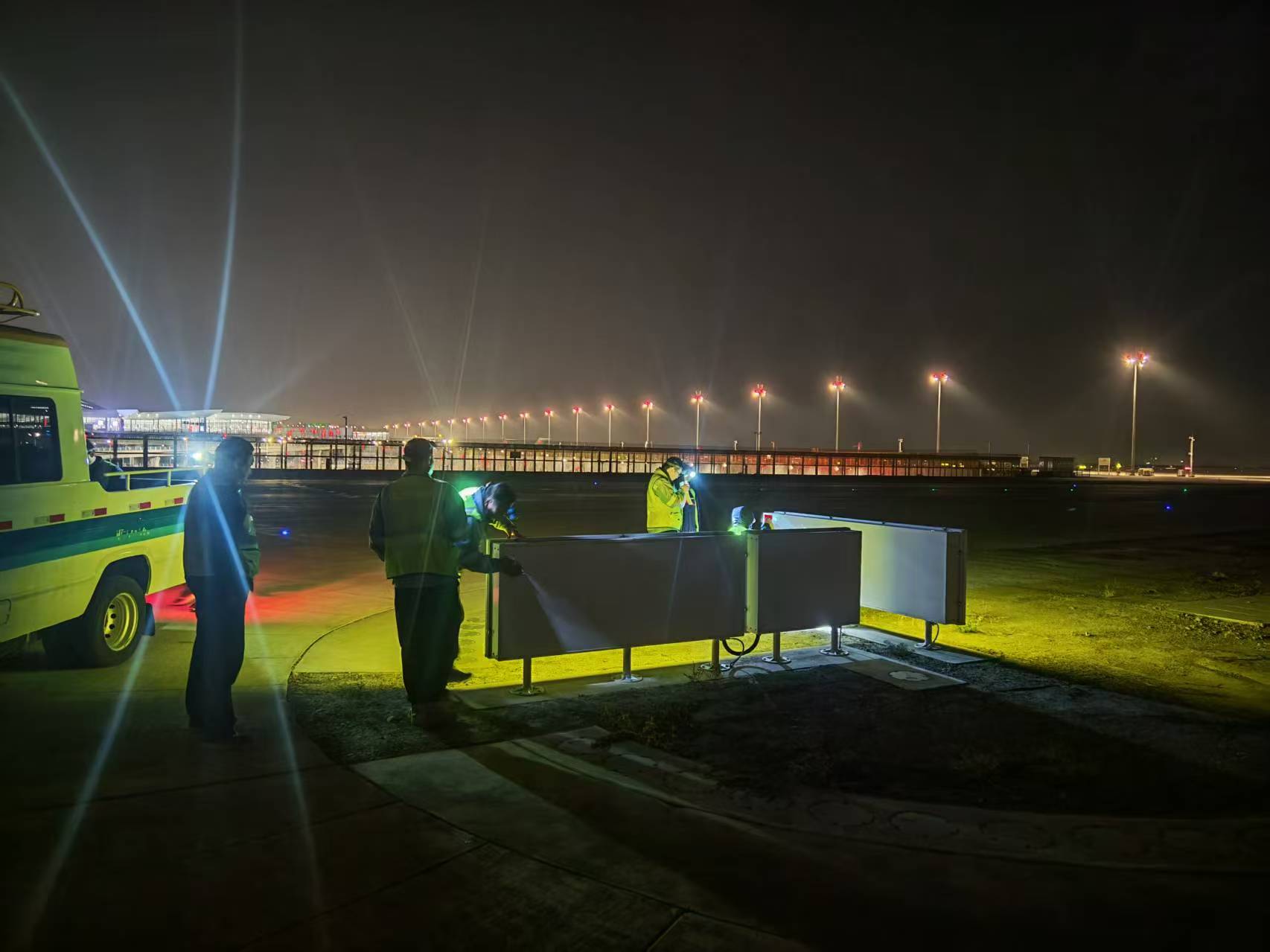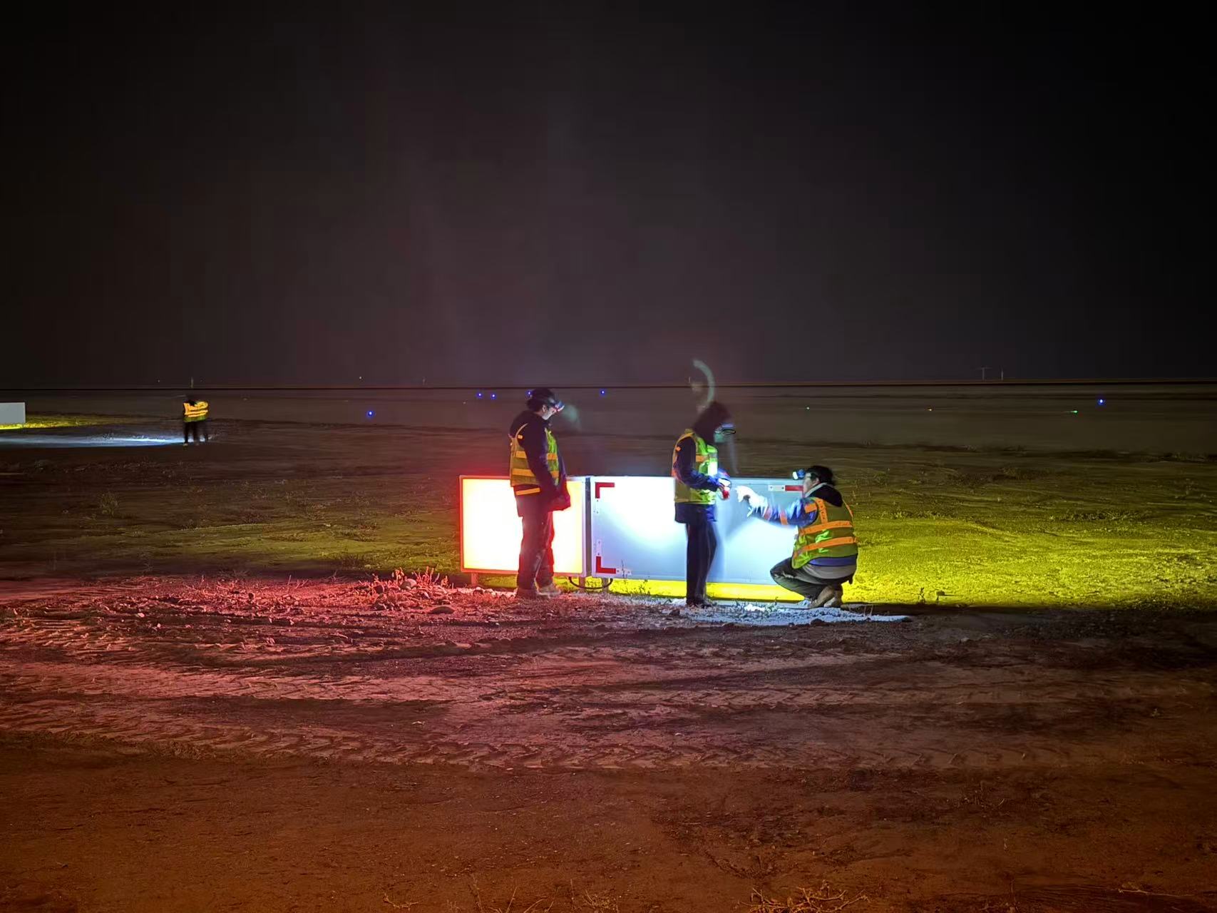 施工结束后,工作小组人员启动“双重核验”机制,一方面通过人工模拟飞行员视角,检查标记牌在不同距离、不同光线条件下的辨识度;另一方面用专业检测设备复核查验发光系数,对核验不合格的立即返工整改,直至所有标记牌均达到安全标准,切实从源头消除视觉指引安全隐患。