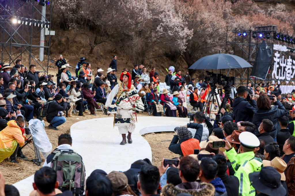 开幕式后的文艺展演同样精彩纷呈。整场演出以“杏花归处是吾乡”为主题,分为“草原牧歌”“沃野耕乡”“幸福花开”三个篇章,由道孚县各界群众代表联袂出演,时装秀、本土服饰情景秀与特色歌舞交织上演,生动呈现出当地独有的人文风情与精神风貌。