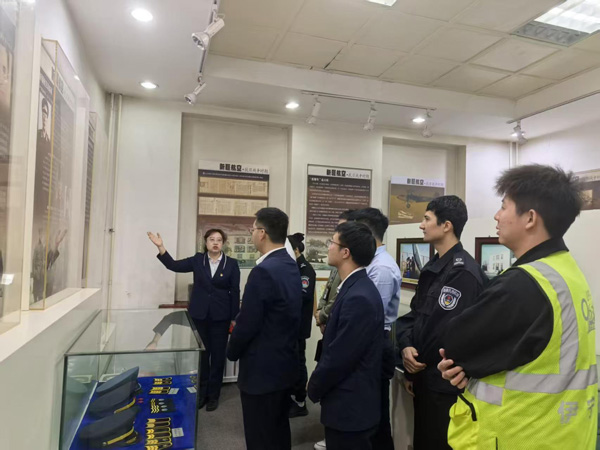 宣誓后,青年团员前往伊犁伊宁国际机场中苏民航陈列馆参观学习。讲解员深情讲述下,一件件航空文物、一幅幅老照片、一份份史料文献,再现了抗日战争时期的烽火岁月。透过保存完好的通讯设备、军需物资及历史影像,青年团员深切感受到老一辈航空人“国家需要就是使命”的忠诚担当和革命气概。大家在抗战时期新疆民航烈士名录前默哀致敬。