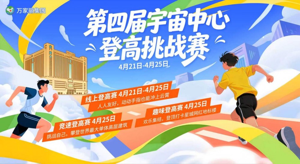 登万座山,不如登一座楼。4月21日至4月25日,第四届宇宙中心登高挑战赛热血来袭,以运动之名,赴春日之约,挑战世界最大单体高层建筑。活动同步开启线上线下双重玩法,线上趣味打卡小游戏轻松上手,动动手指就能“冲上云霄”,粉丝群排名前30名即可抱走定制好礼;4月25日,线下赛场火力全开,竞速登高赛邀你挑战自我、突破极限,趣味登高赛汇聚欢乐、共享美好,无论你是追求速度的硬核选手,还是享受过程的休闲玩家,都能在这里将登顶的快乐,兑换成看得见的丰厚奖励,在攀登中感受春日活力与城市风光。