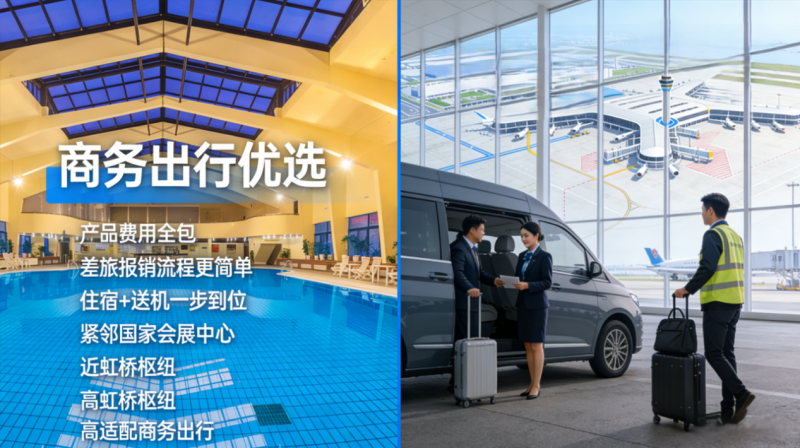 专为企业差旅客户量身打造,入住即享免费虹桥枢纽送机服务,服务费用已全额包含在房费内,无需额外付费,真正实现住宿+出行一站式服务,省心又省力,全面满足差旅人士高效便捷的出行需求。