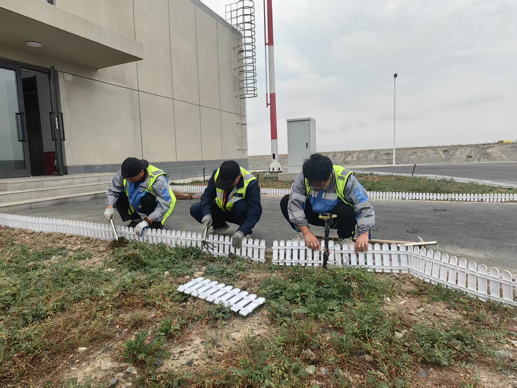 作业过程中,管理部工作人员严格遵循飞行区运行管理规定,在不影响机场正常航班保障的前提下,分工协作、有序施工。大家精准测量、规范打孔、牢固安装,全程严把施工质量与安全关,确保防护栅栏安装牢固、布局规整,与周边绿化环境协调统一。经过连续作业,顺利完成指定区域草地周边栅栏安装,彻底解决了草地随意被踩踏、外来人员及动物误入的问题。